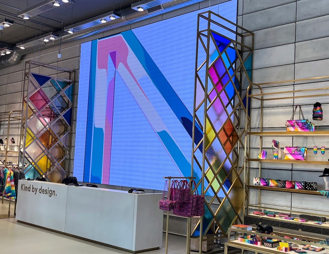 A Linkedin post by UK solutions provider Pixel Inspiration reminded me of a forgotten photo I shot while walking along London’s busy Oxford Street on a visit last fall – a big and impressive video wall in the flagship for London-based shoe designer Kurt Geiger.