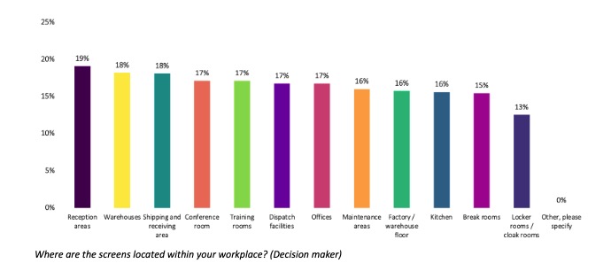 - 59% of workers said the information shared on workplace screens helps them become more productive.