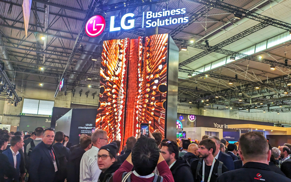 There was one hardware trend at ISE that was hard to miss: the prominence of transparent LED screens, exemplified by the large Muxwave display at the south entrance of the Fira Barcelona. In an otherwise highly commoditized visual solution industry, transparent screens are the latest trend. Among LG’s transparent OLED solutions there was a new curved display designed for retail environments. Samsung also captured attention with a striking prototype of a transparent MicroLED display. A very similar product was spotted at the booth of the Taiwanese manufacturer AUO.