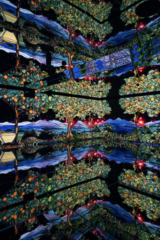 This more representative and less typical approach to local culture is composed of three stages. The audiovisual begins by showing the colors that form the stained glass windows, then goes through the mosaics of Gaudí’s iconic trencadís and ends with a simulation of water and lights that represents the fountains of Montjuïc. With this we seek to immerse you in a digital artistic space with typical elements of Catalan culture and geography.