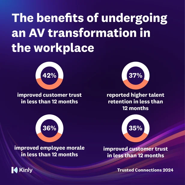 Statistics show that enterprises that have undergone an AV transformation project within the last year have reported a 42% increase in productivity, a 42% increase in efficiency and a 37% increase in staff retention.