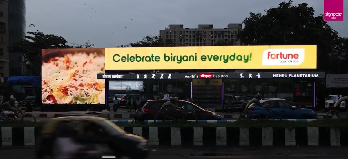 Digital out of home displays at higher profile mass transit stops are commonplace these days, but most of those deployed around the world are high brightness LCDs built in some way or another into the bus shelter. This one in Mumbai takes a very different approach.