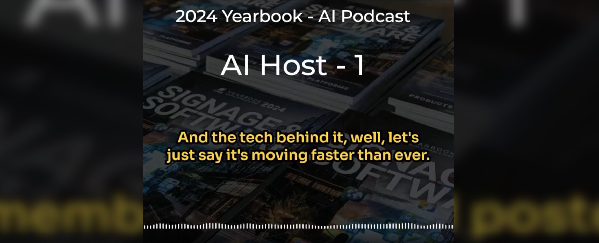 Signagelive CEO Jason Cremins, who with his CTO Marc Benson has a long history of being early adopters of emerging tech, has monkeyed around with some AI tools and come up with a podcast that is built around material from a publication and hosted by a pair of AI-generated personalities.