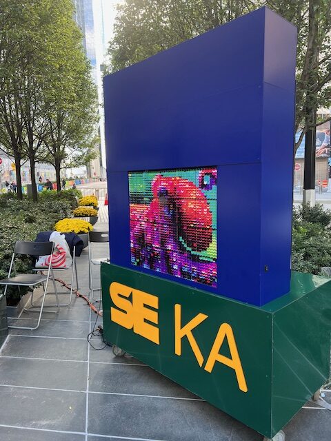 KA-Dynamic Color and a NYC partner Sign Expo got the OK to show a portion of its billboard tech in a park yesterday and again today (at the corner of Barclay Street and West Broadway), timed to coincide with a pile of OOH media people being in Manhattan for yesterday’s DPAA’s annual digital out of home media summit.