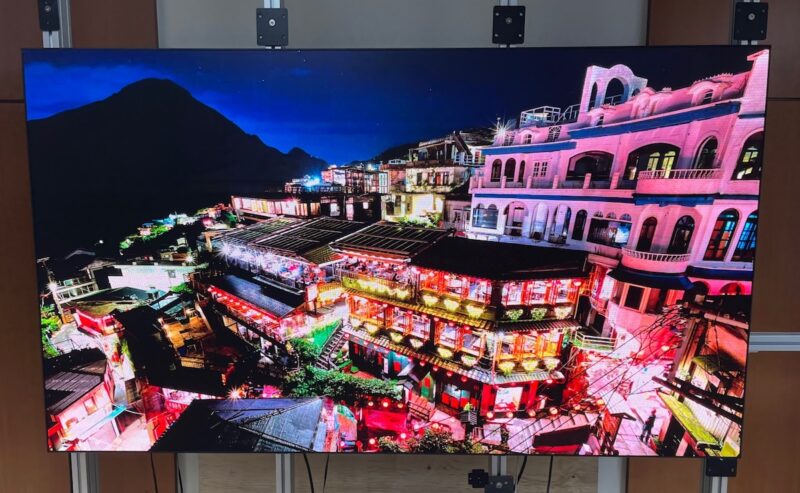 One of the big reasons I spent a week recently in Taiwan – apart from the food – was to get a sense of where microLED was at. As noted a bunch of times, most of what is marketed as microLED is just miniLED that marketers decided was teeny enough to call micro. But some of Samsung’s The Wall TVs really are microLED (sub 100 micron lights or dies), and I saw at AUO and elsewhere transparent microLED, interesting transparent microLED/LCD layered mash-ups, R&D microLED TVs that have costs way less than what’s on the market now, and microLED wearables.