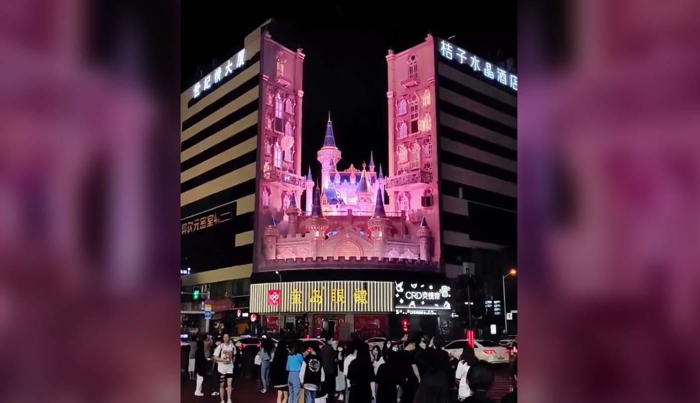 The Yaham staffer posting this on Linkedin unfortunately references this as a “naked-eye 8K 3D screen” on a building in Changsha, China, but this caught my eye because at least one of the visual illusion creative pieces running on the screen does a nice job of working with the physical features of the building.