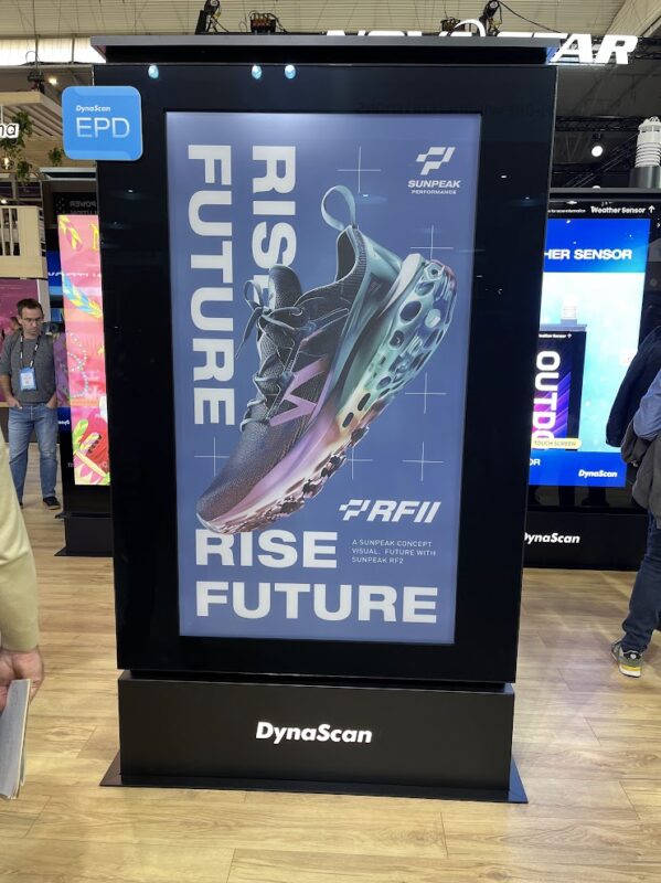 I mention this because Taiwan’s Dynascan, a major player in high bright outdoor ad displays, has an interesting set-up at its stand that has three street furniture ad totems side by side. Same enclosures and dimensions.