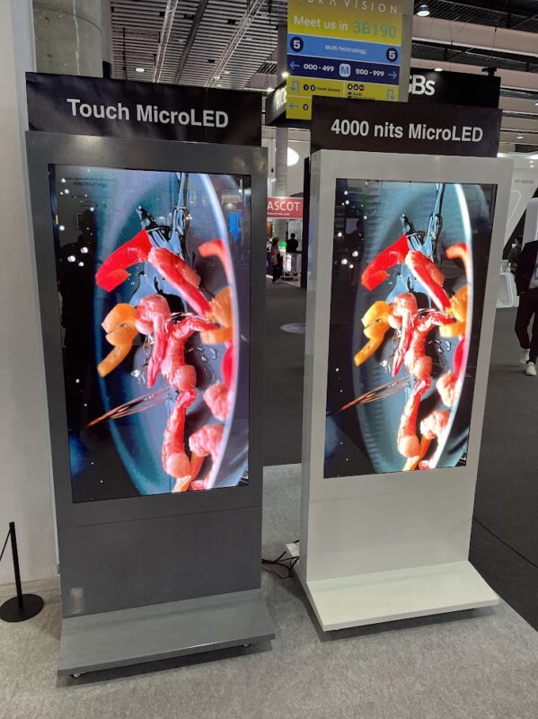 What stopped me was a pair of display totems that were positioned as prototypes for using microLED for use cases like advertising.