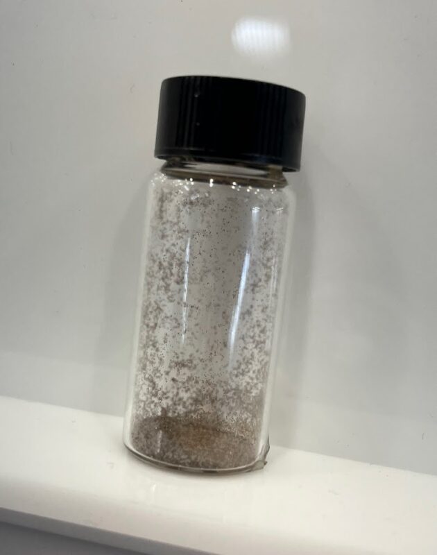 To give you a sense of the size of microLED, this glass jar has a bunch of specks that look like glitter, but they are LED light chips. And they are 225 microns, or substantially larger than the sub 100 micron threshold for true microLED. The real stuff, you need a microscope to see. That size reflects the big challenge with the tech – to somehow place millions of those specks accurately on electronics and then have them powered and all working together.