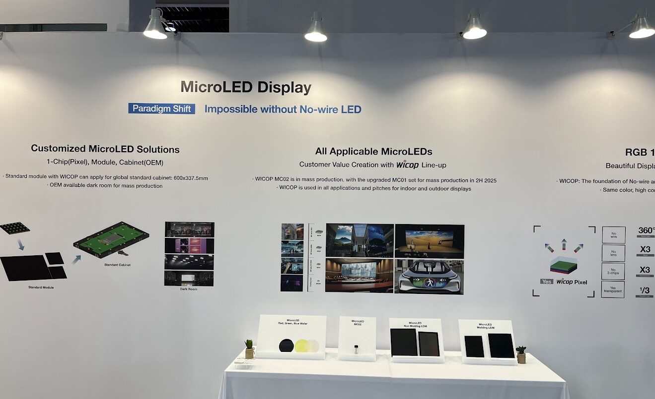 It says microLED all over the stand, but it turns out the intent was to show manufacturers where the Korean company is at and going with microLED. The totems were actually miniLED right now but the short-term roadmap gets Seoul Semi to true microLED.