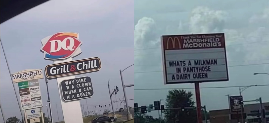 This is a bit dated but great – a playful sign war in a small Missouri town that had various businesses needling each other or just adding some color.