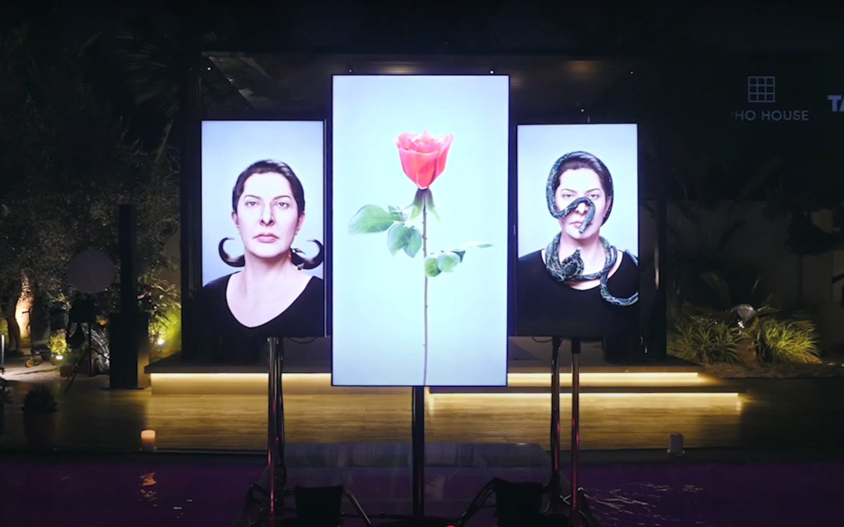 The dinner doubled as the UAE premiere of a new digital art performance by Serbian artist Marina Abramović. The goal for the evening was intimacy. So instead of large LED walls here, M-Cube brought in six displays on rollable stands, with all cables neatly hidden. These were placed throughout the space to create an immersive, gallery-like experience that allowed guests to feel up close and personal with the artwork.