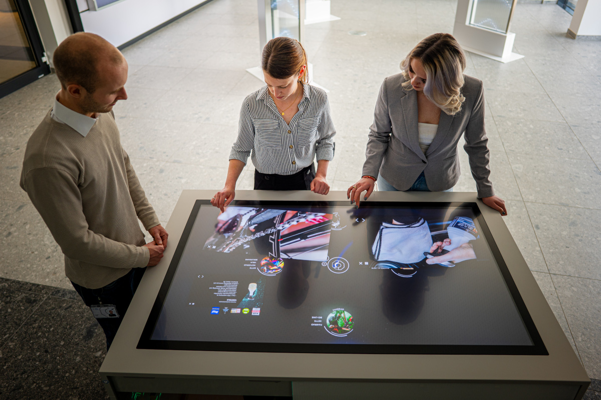 - A “history wall” featuring a mobile multitouch screen on rails.