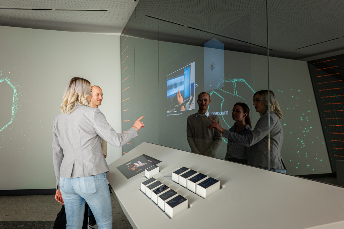 The Wack Group provides cleaning technologies to manufacturers of electronic assemblies for aviation, automotive, and medical tech. The new showroom serves as the first stop for international clients visiting their headquarters near Ingolstadt. The interactive displays are designed to set the stage for the lab and technical center tours that follow.