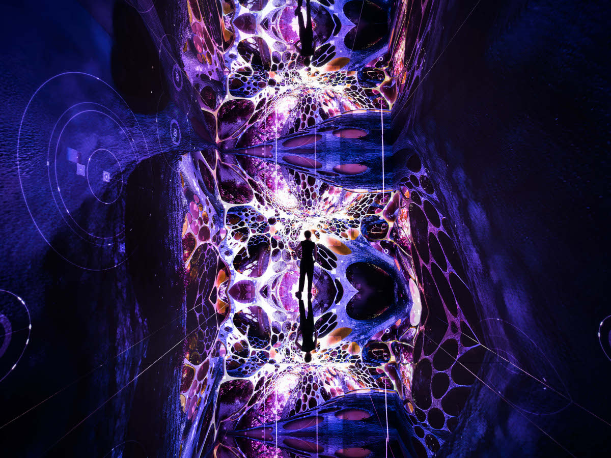 His artworks are displayed on massive LED screens or projection surfaces, often paired with sound. At the recently concluded “Living Architecture: Gehry” exhibition at the Guggenheim Museum Bilbao, an entire room with soaring ceilings was transformed using high-performance projectors and immersive surround sound.