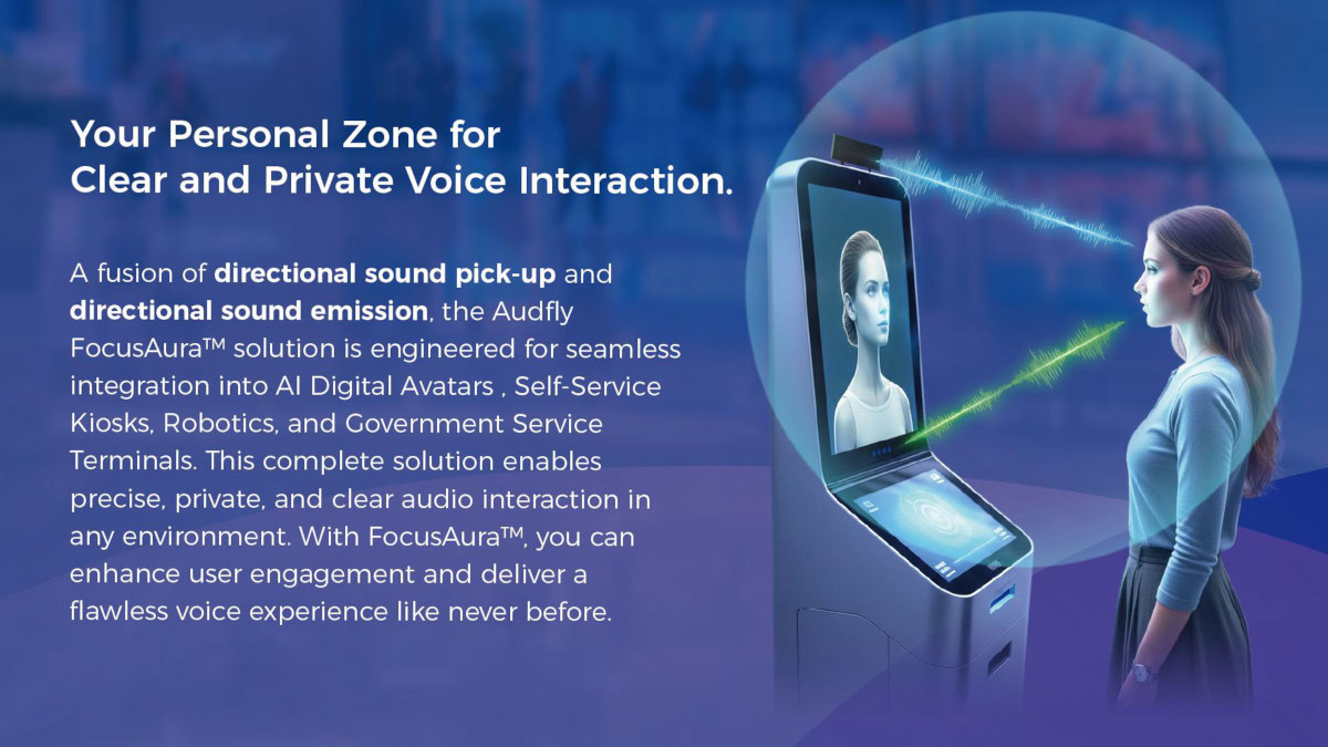 “By combining precision sound emission with targeted voice pickup, we are creating a ‘Private Sound Zone’ for digital signage, allowing for clear, private, and noise-free user interaction without physical barriers,” said Junwei Mao, head of R&D at Audfly.