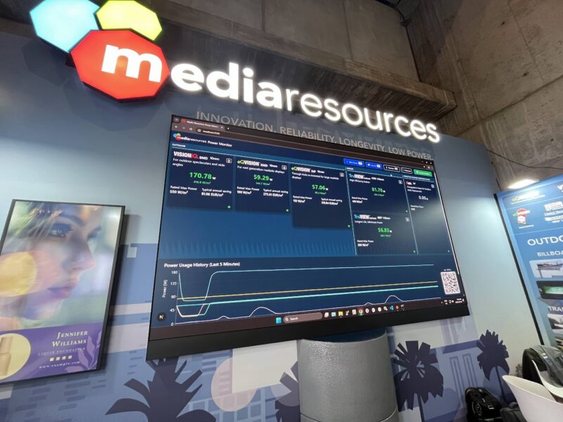 Media Resources out of the Toronto-area also had a good looking totem (as did others), though what was really interesting with the Canadian guys was a demo of their engineering work to greatly reduce power consumption on outdoor displays. Power is EXPENSIVE, so if you can substantially reduce the draw, it can mean a big reduction in operating costs for media companies.