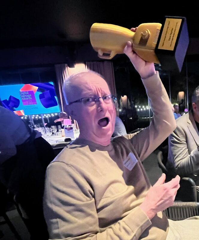 Thanks to Invidis for doing the Sixteen:Nine mixer and SignageOS for sponsoring, keeping the traditional alive without killing me with the organizing and execution work. It has been 20 years now for this site and almost as long for mixers, so they had a gold blender made as a trophy (blenders are called mixers in the EU). Very kind, and funny.
