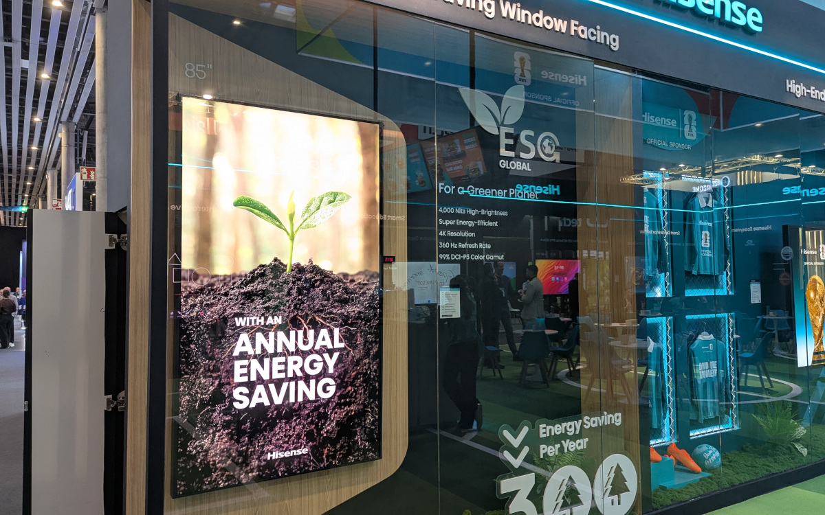 High-brightness displays for window-facing applications were also on show, featuring 4,000 nits of brightness and local dimming functionality. Hisense unveiled a new high-brightness display for the first time: a 4,000-nit screen designed to save up to 55% energy compared to conventional LEDs.